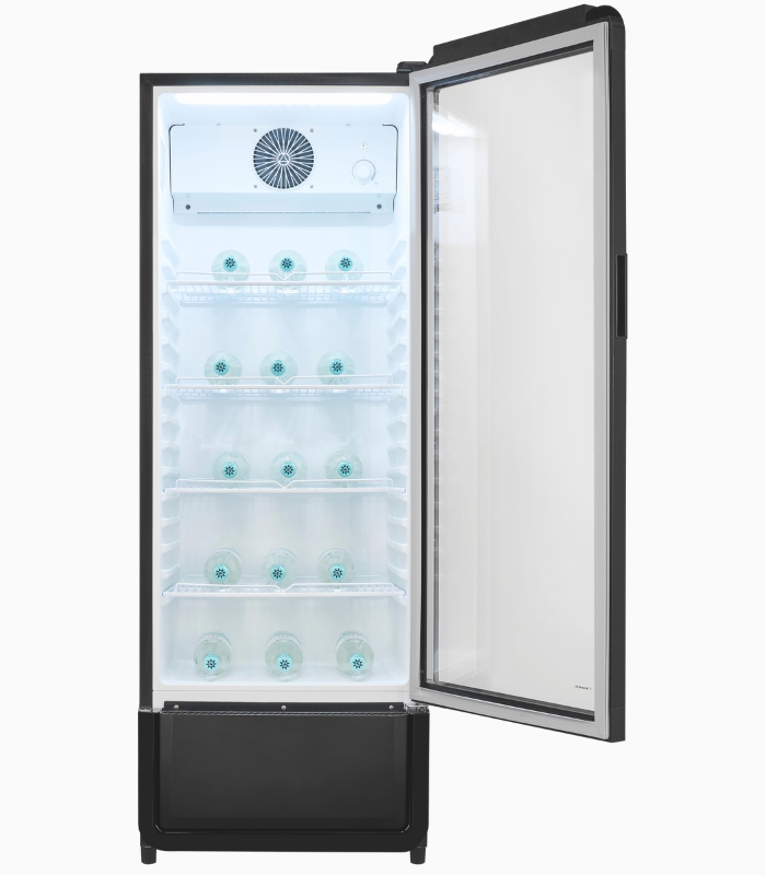 The fan-assisted cooling function ensures a constant temperature in the refrigerator compartment. Significant internal temperature fluctuations affect the quality of refrigerated food. The practical internal fans ensure that the cold air circulates evenly throughout the refrigerator.