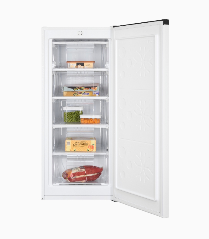 Anche la flessibilità è una caratteristica fondamentale quando si tratta di configurazione: la cerniera della porta reversibile, i piedini anteriori regolabili in altezza e le ruote posteriori consentono di integrare facilmente il congelatore in qualsiasi angolo della cucina. Il design ben studiato consente di personalizzarlo in base al proprio spazio, che si viva da soli o con la famiglia.