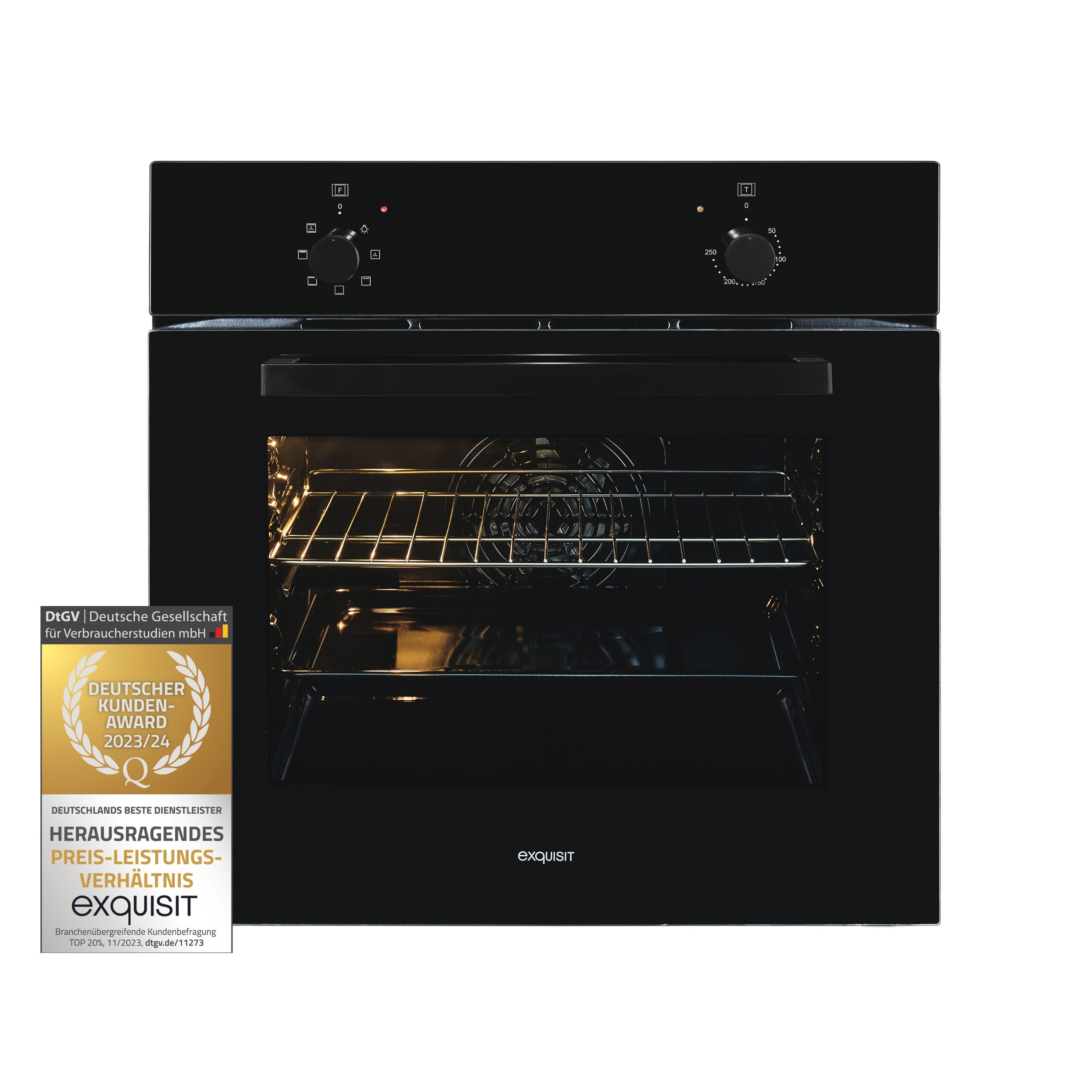 Exquisit Einbaubackofen EBE255-U-020 schwarz | Energieeffizienzklasse A | 59,0 l Garraum | Umluft | Einbaubackofen 60 cm