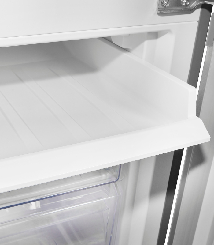 Этот холодильник-морозильник особенно прост в использовании: удобная ручка позволяет легко открывать и закрывать дверцу. Регулировка температуры интуитивно понятна, а яркая светодиодная подсветка обеспечивает хороший обзор продуктов даже при слабом освещении. Функция автоматического размораживания холодильного отделения упрощает ежедневные задачи, устраняя необходимость ручного размораживания.