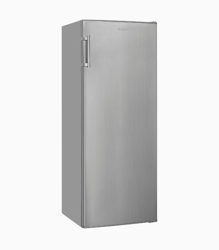 KS5320-VH-040D paslanmaz çelik görünümlü tam boy buzdolabı, evde taze gıda saklamak için 242 litre net kapasiteye sahip, bağımsız bir cihazdır. İç kısımda, dördü yüksekliği ayarlanabilir olmak üzere beş cam rafın yanı sıra, entegre şişe rafı bulunan dört kapı rafı, sebze çekmecesi ve iki yumurta tepsisi bulunur. LED aydınlatma, içindekilerin net bir şekilde görülmesini sağlar. Sıcaklık manuel olarak kontrol edilir ve buz çözme işlemi de manueldir. Yıllık enerji tüketimi 83 kWh'dir, cihaz D enerji verimlilik sınıfında sınıflandırılmıştır ve C gürültü emisyon sınıfında 39 dB(A) gürültü emisyonuna sahiptir. Cihazın boyutları 142,6 x 54,5 x 55,5 cm'dir (Y x G x D). Özellikleri arasında bar tipi tutacak, ters çevrilebilir kapı menteşeleri, değiştirilebilir kapı contası, ön tarafta yüksekliği ayarlanabilir ayaklar ve arka tekerlekler bulunur. Exquisit, temel ihtiyaçlara odaklanan fonksiyonel ve güvenilir ev aletlerini temsil eder.